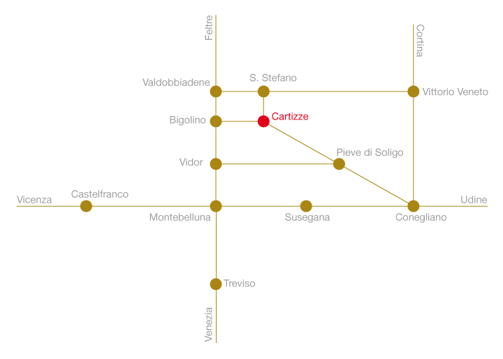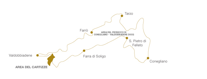 Das Weingut De Conti liegt in der Via Cartizze in den Hügeln von Valdobbiadene in den Venetischen Voralpen. Auf 15.000 Quadratmeter der insgesamt 20.000 Quadratmeter befinden sich Weinberge, in denen Trauben der Rebsorte Prosecco D.O.C. "Superiore di CARTIZZE" angebaut werden. Damit ist De Conti das einzige Weingut im Anbaugebiet vom "Prosecco di Valdobbiadene", das ausschließlich Trauben der Rebsorte Prosecco D.O.C. "Superiore di CARTIZZE" erzeugt, eine Garantie für den Kunden, dass es sich bei den auf dem Weingut erzeugten Weinen um authentische Originalweine "CARTIZZE" handelt.